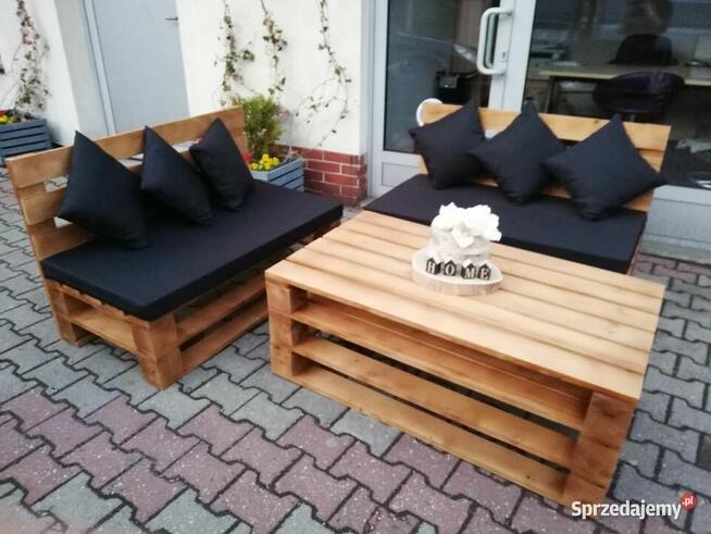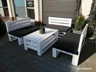 Drewniany zestaw mebli ogrodowych wykonany z solidnych suchych oszlifowanych i zaimpregnowanych desek na wzór palet Zestaw w ...