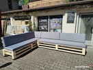 Narożnik drewniany wykonany na wzór palet Wymiar 210x280 cm Poduszki uszyte z materiału wodoodpornego w zestawie ...