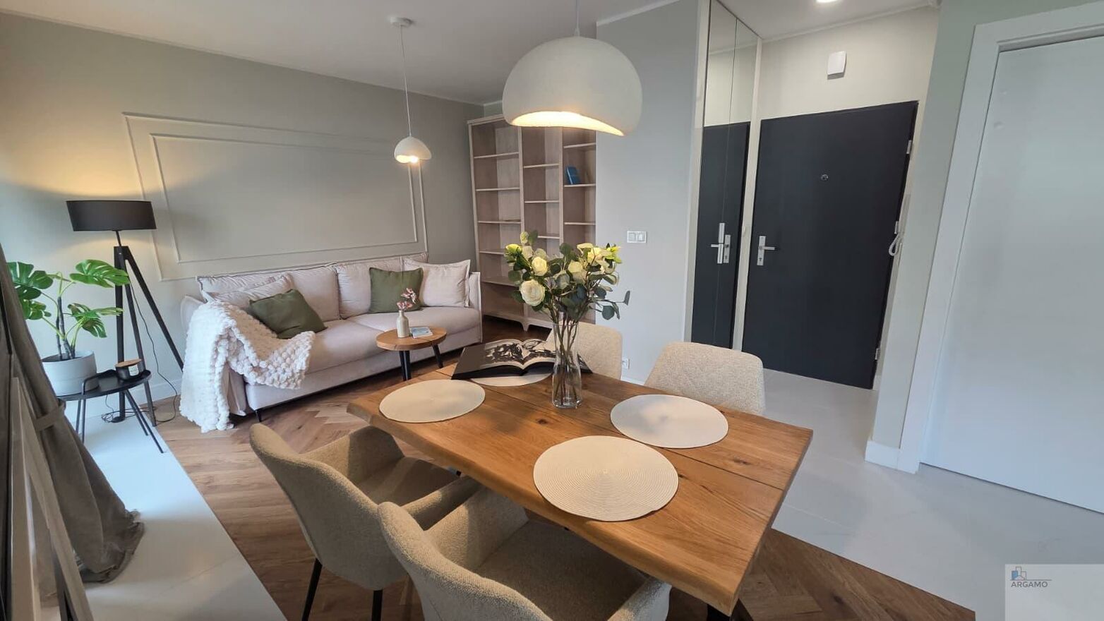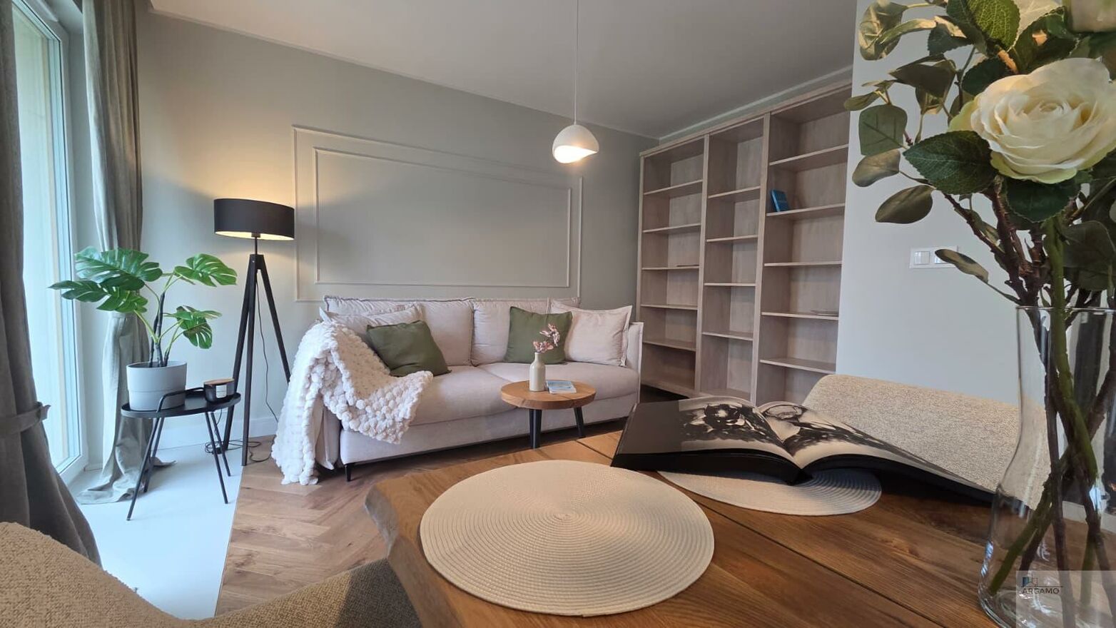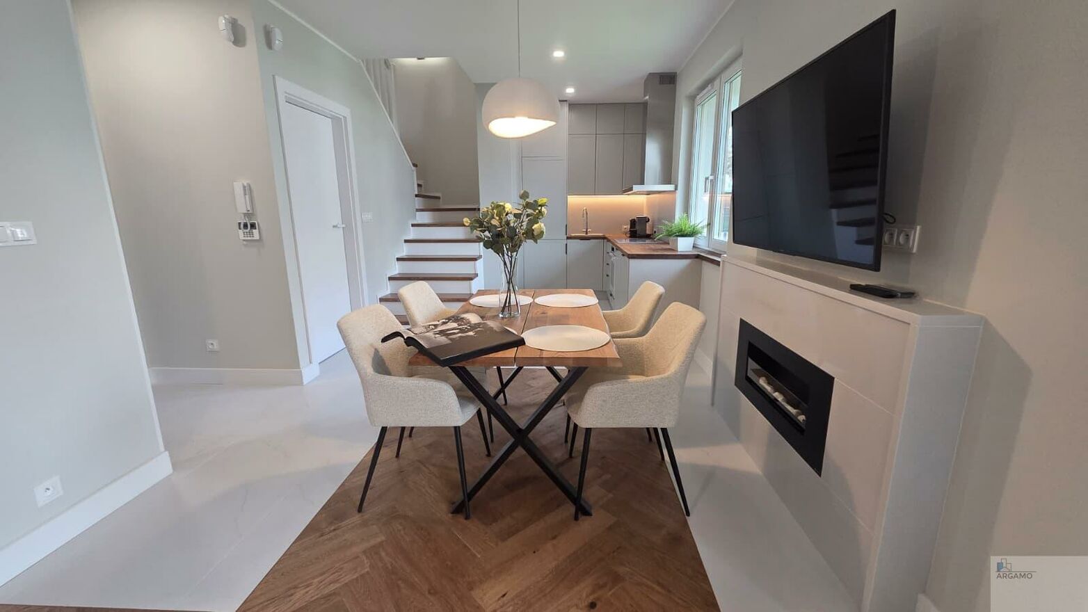 Dom wyróżnia się pięknym jasnym wnętrzem, nowoczesnym wykończeniem w stylu skandynawskim oraz dbałością o najmniejsze szczegóły.