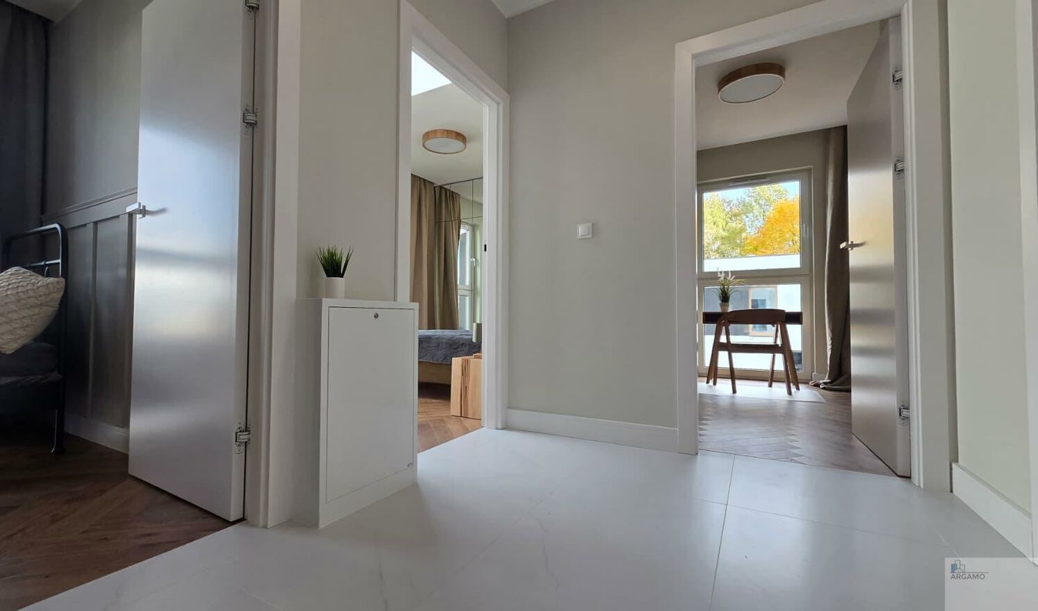 - przedpokój z zabudowaną szafą,
