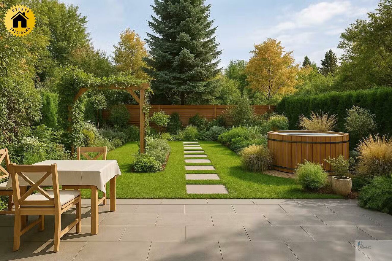 Nieruchomość położona jest na prostokątnej, zagospodarowanej działce, z pełną infrastrukturą ogrodową i kanałami miejskimi.
