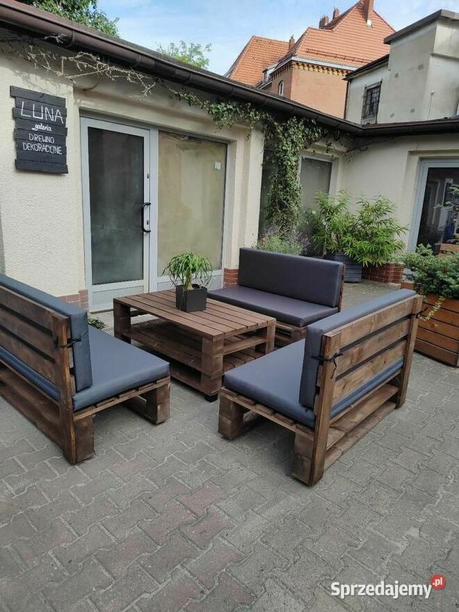 Zamów już dziś i odbierz w dogodnym terminie Drewniany zestaw ogrodowy wykonany na wzór palet w kolorze palisander składający się z 3 kanap i stolika Kanapa 100 x 60cm Stolik 100 x55 x 47 cm Poduszki w komplecie wykonane z materiału wodoodpornego, pokrowce na zamek Meble wykonane z solidnych suchych i oszlifowanych desek Wysyłka kurierem na palecie 260 zł płatność z góry, 350 zł pobranie ,transport 2,5 zł / 1 km lub odbiór osobisty w galerii LUNA w Siemianowicach Śląskich Zapraszamy galeria LUNA Siemianowice Śląskie- Wypromuj ogłoszenie