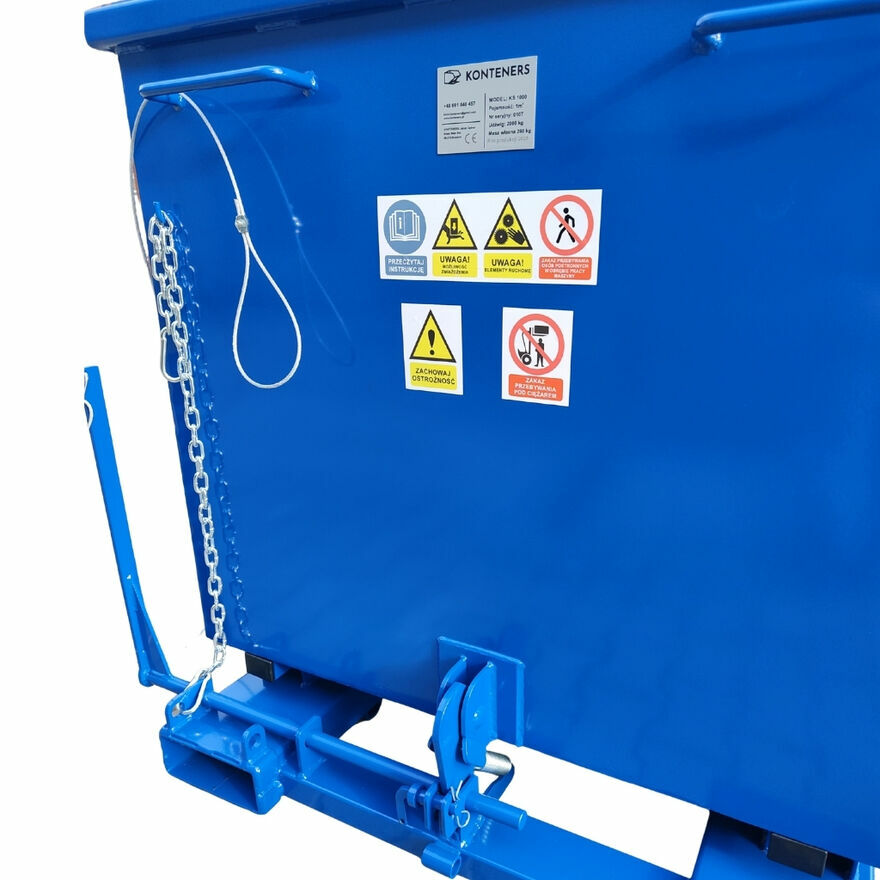Kontener samowyładowczy do wózka widłowego 1 m3 1000 L otwierany za pomocą dźwigni