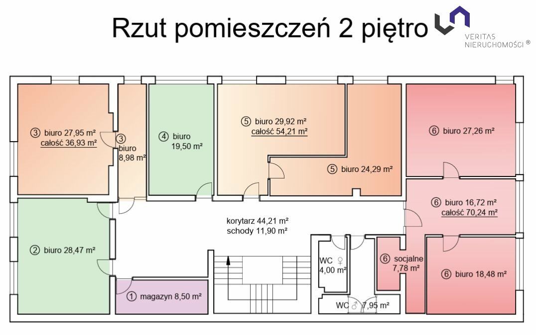 Opcja wynajęcia 70m2 lub większej powierzchni - rzut w załączeniu pomieszczenia nr 6 oraz 3