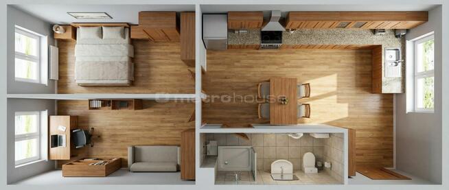 Mieszkanie 47,84 m²: 2 pokoje z antresolą, salon z aneksem kuchennym, łazienka. Widok na ogródek. Duża piwnica 20,13 ...