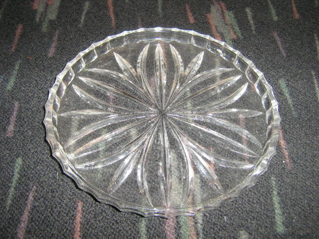 Patera ze szkła prasowanego - ozdobny wzór ( rozeta lub gwiazda); producent: Huta Szkła Gospodarczego Ząbkowice (lata 70- ...