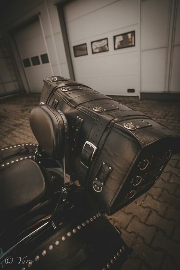 Motor posiada m.in. szybę, dodatkowe oświetlenie z przodu, sakwy, kufer.