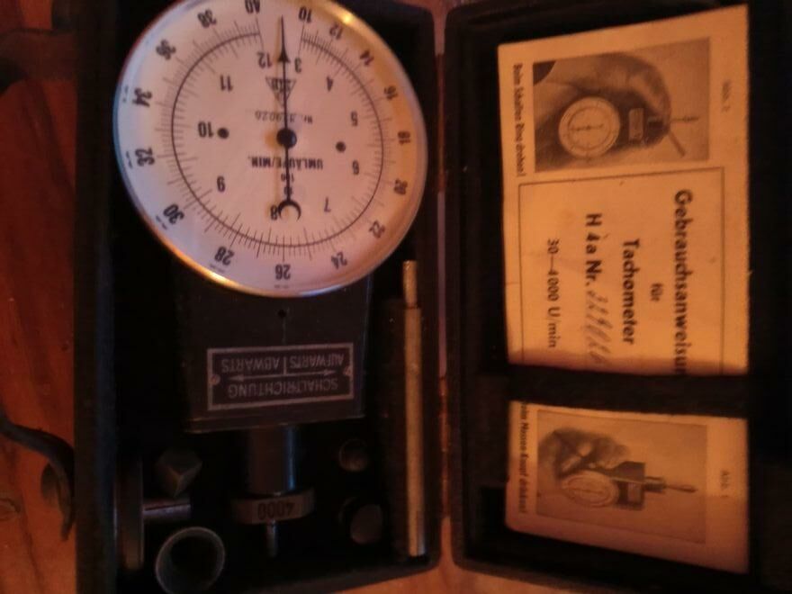 Widoczny model to kolekcjonerski, niemiecki obrotomierz z lat 40-tych lub 50-tych.