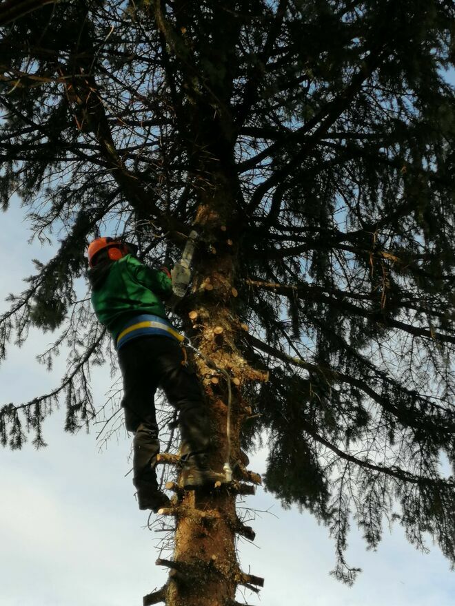 Wycinka drzew oraz usuwanie drewna i gałęzi.