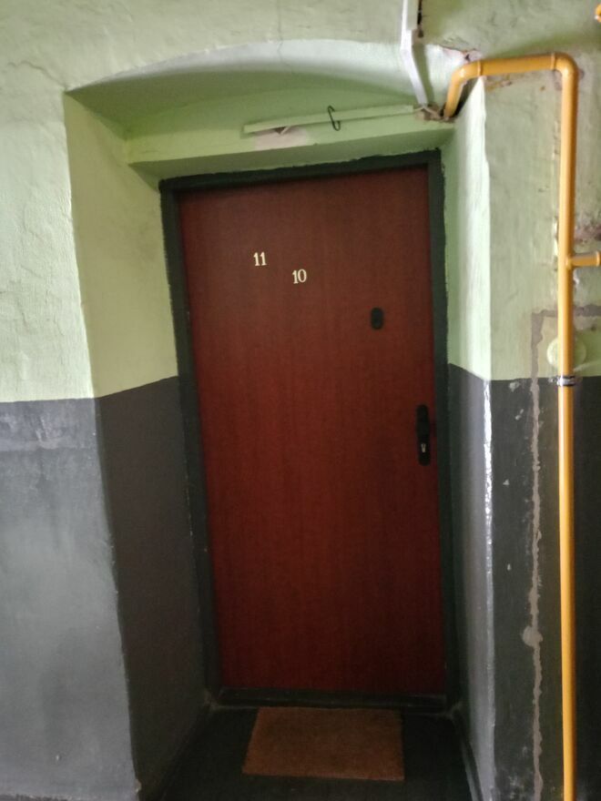 Korytarz wspólny zamykany i mieszka w nim spokojny jeden lokator.